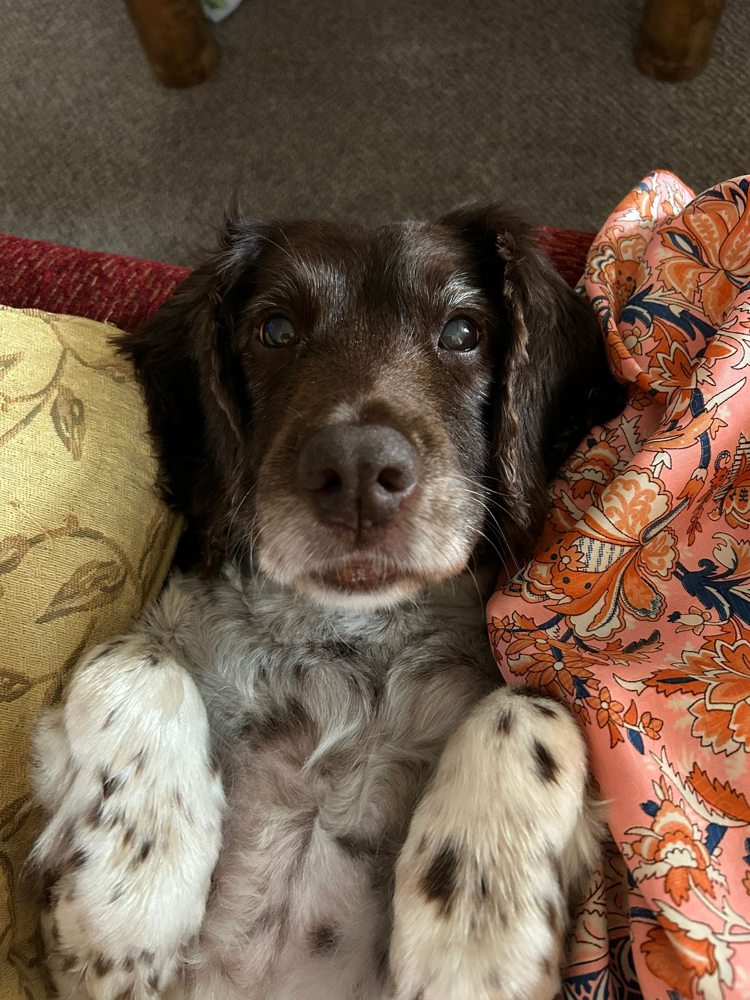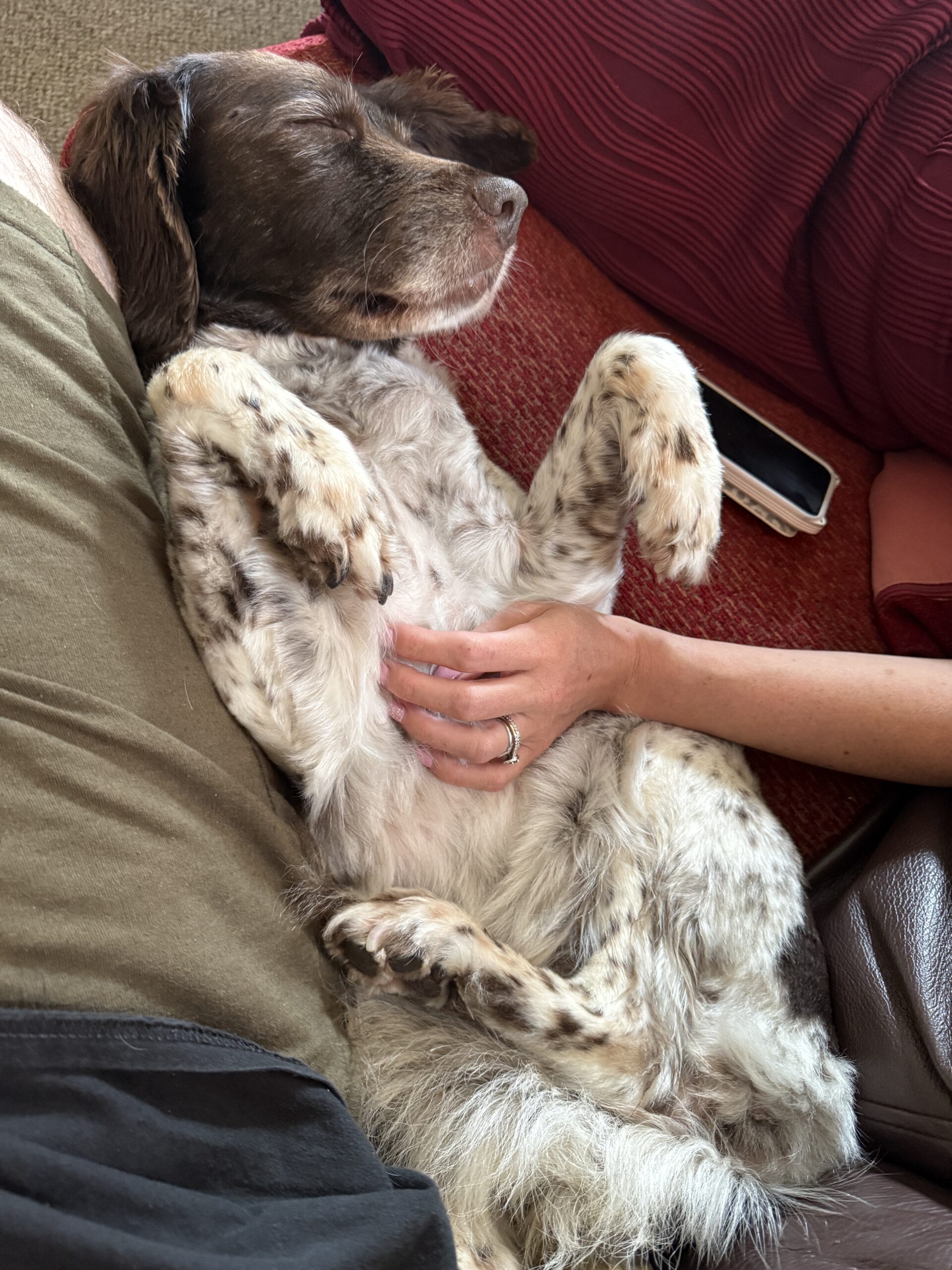 I live in the North of England so on those rare occasions when the weather is too bad for a walk she welcomes a lovely day on the couch watching movies keeping her hooman warm.